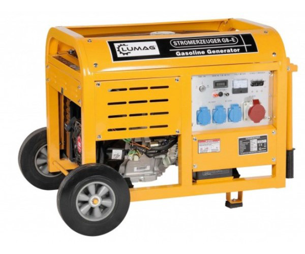 The Lumag G8E generator features a remote control electric start and has outputs of 400v, 230v and 12v. It is built in a strong steel frame with wheels. This generator has output power of 8KW and weighs 92Kg.